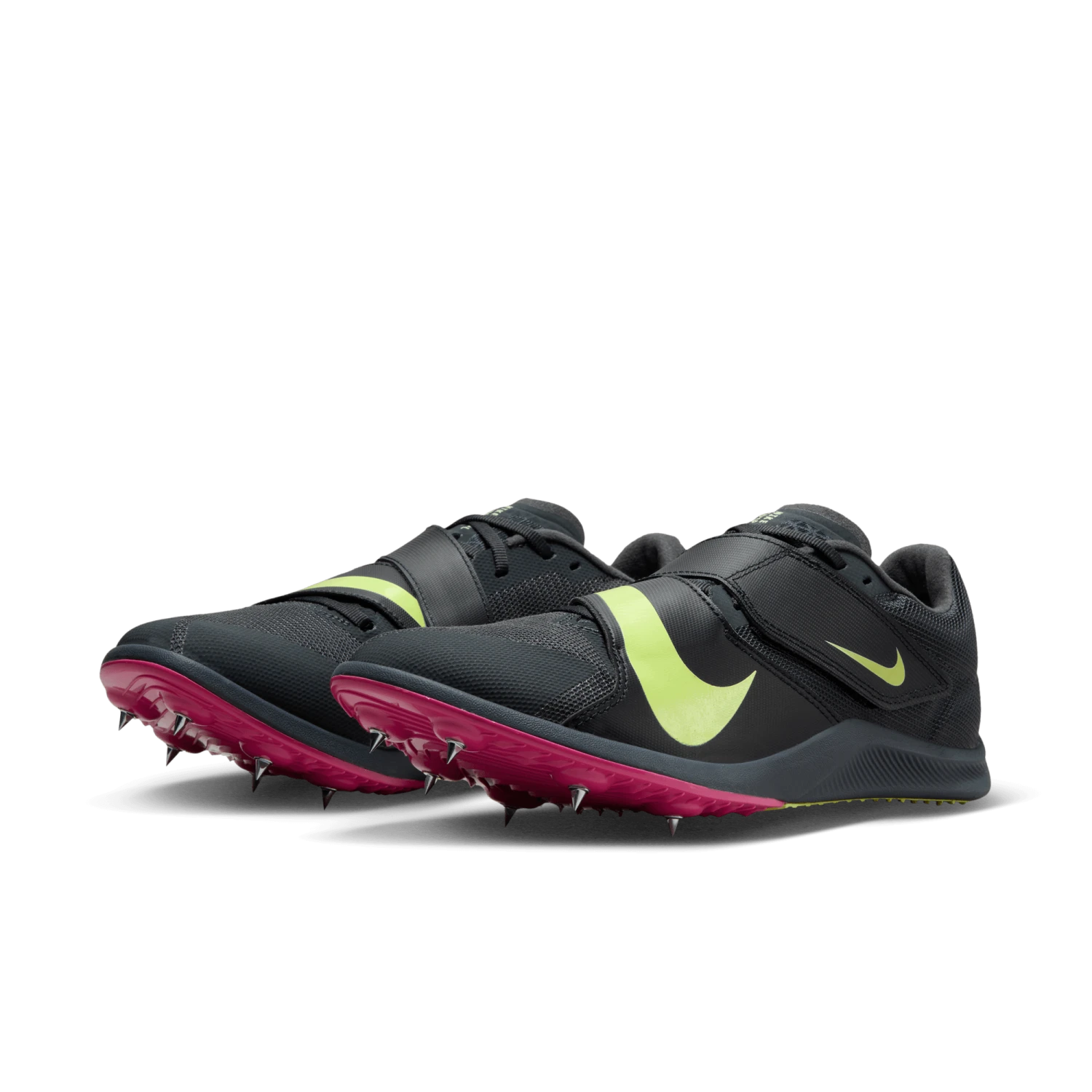Pop a personal best in a model specifically designed for jumping events. Forefoot spikes and secondary heel traction give you confidence in wet or dry conditions on various track surfaces and different takeoff boards. A thick, yet lightweight cushioned heel and a wider shoe base help withstand the demands of jumping at full throttle.